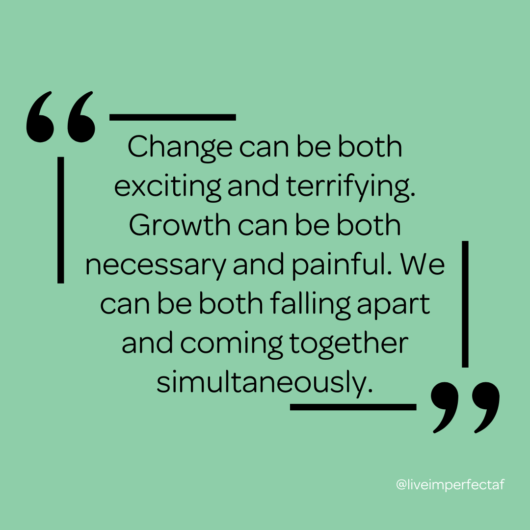 Change can be both exciting and terrifying. Growth can be both necessary and painful. We can be both falling apart and coming together simultaneously.